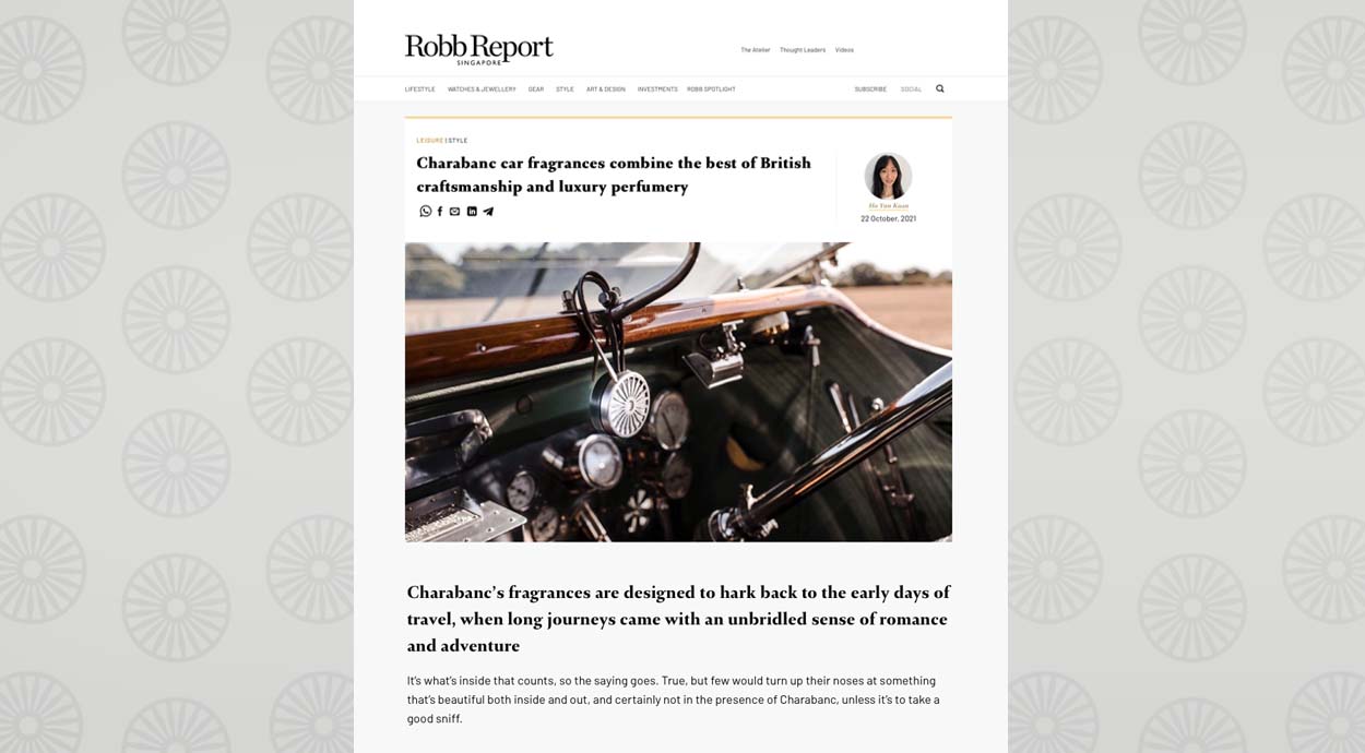 “Charabanc car fragrances combine the best of British craftsmanship and luxury perfumery”